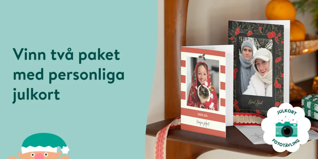 Tävla med Önskefoto om gratis julkort. 20 vinnarna får två paket med sina personliga julkort plus en presentkupong på 500 kr hos Önskefoto.