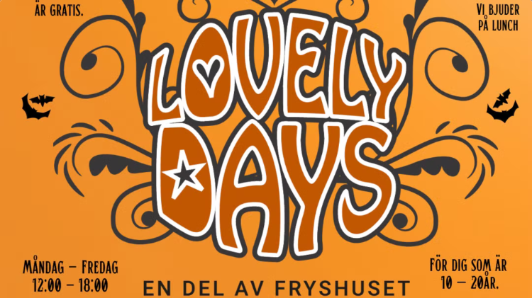 Lovely Days är Fryshusets kostnadsfria lovverksamhet där unga mellan 10-20 år får möjlighet att testa nytt, hitta inspiration och träffa nya vänner i en trygg och välkomnande miljö. Bland aktiviteterna under höstlovet finns bland annat utflykt till skärgården och SHockholm, kreativ verkstad med halloweentema, DJ-workshop, gaming i samarbete med DreamHack och FUZED och spökvandring.