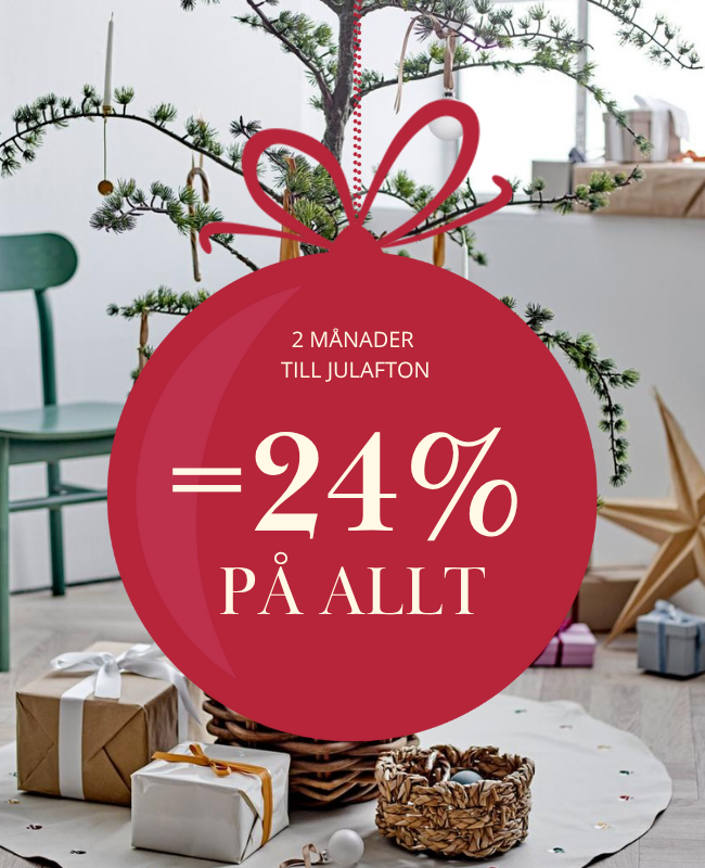 Julen är 2 månader bort och Kitchen Living Dining firar med att bjuda på 24% rabatt på allt. abatten gäller endast fredag-söndag 24-26 oktober. Rabatten dras av i varukorgen och gäller på varor som inte redan är rabatterade.