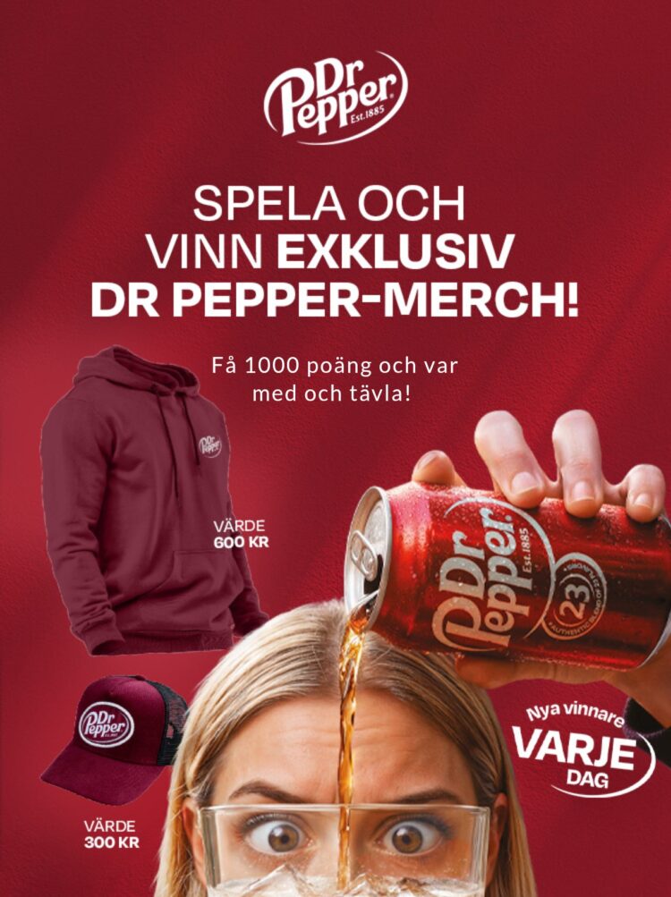 Spela ett spel och få minst 1000 poäng. Varje delas det ut 200 kuponger som ger en gratis Dr Pepper.