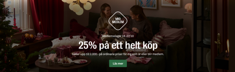 Få 25% rabatt på ett köp upp till 2000 kr. Gäller dig som är eller blir klubbmedlem. Erbjudandet gäller på ordinarie priser och kan ej kombineras med andra erbjudanden, produkter märkta med Alltid lågt pris eller köp av presentkort.