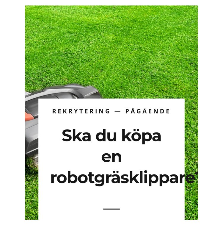 AskSweden söker villaägare i Stockholmsområdet som går i tankarna att köpa en robotgräsklippare till en fokusgrupp. Dela med dig av dina funderingar, behov och förväntningar – vad är viktigt för dig i valet? Alla deltagare får ett presentkort på 800 kr som tack för sitt deltagande.
